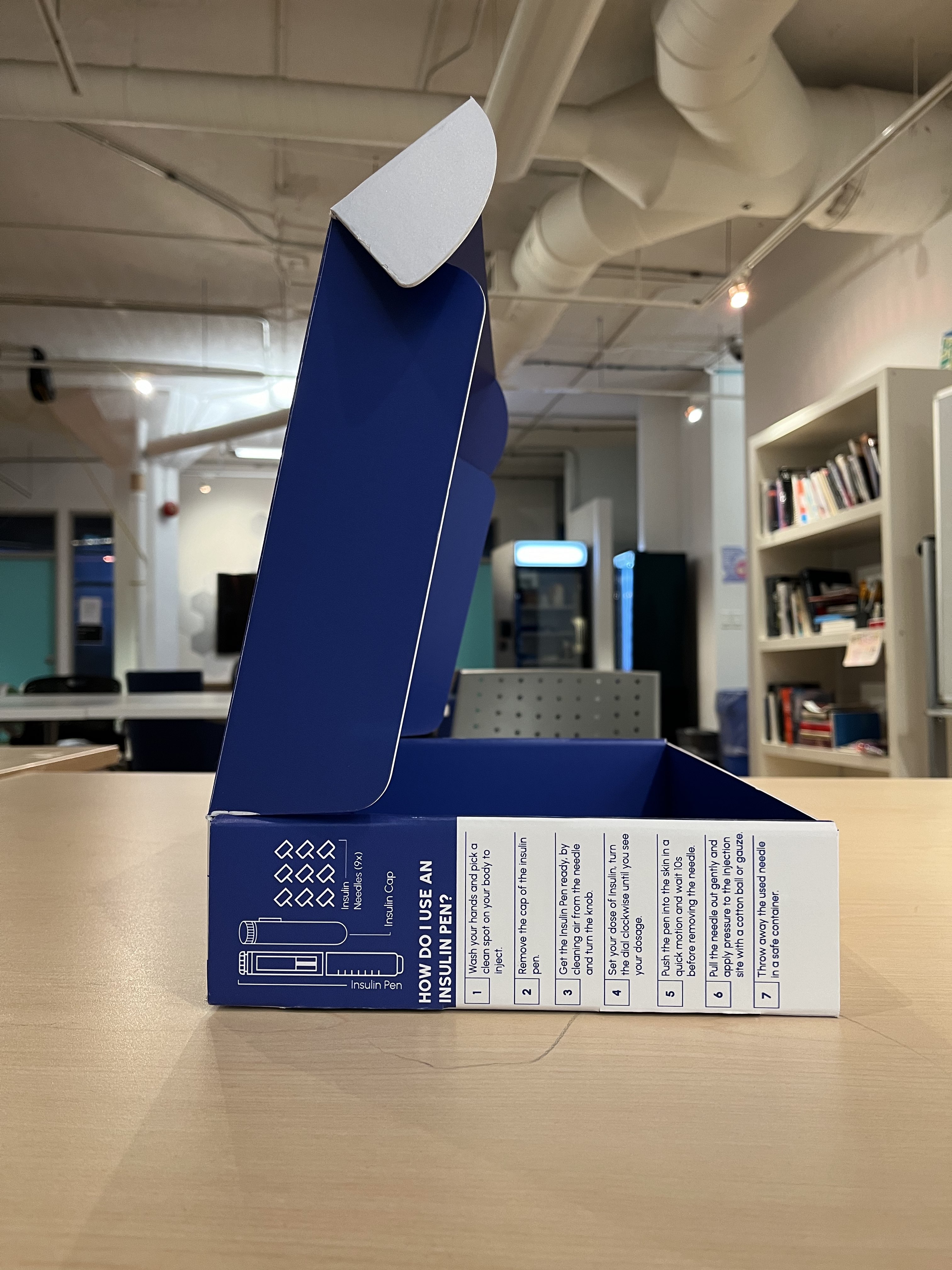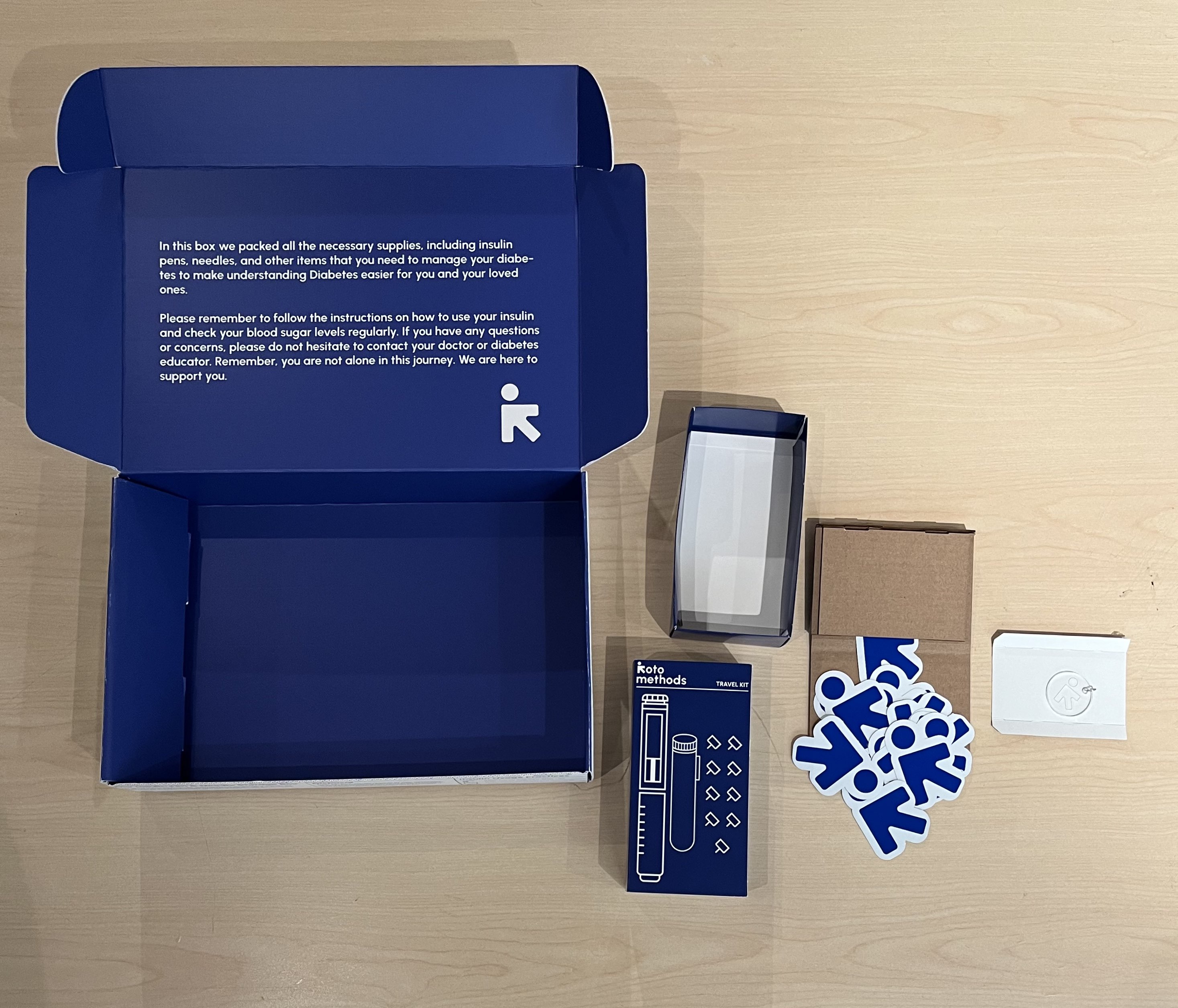 The transition from paper prototypes to the final product was a long process that involved a series of trial and error for all stages. KOTO’s transition took into account the health components (Insulin pen, needles, sticker box, travel kit, disposal needle box, and manual) as well as the box components - dividers, that would help everything stay in place.