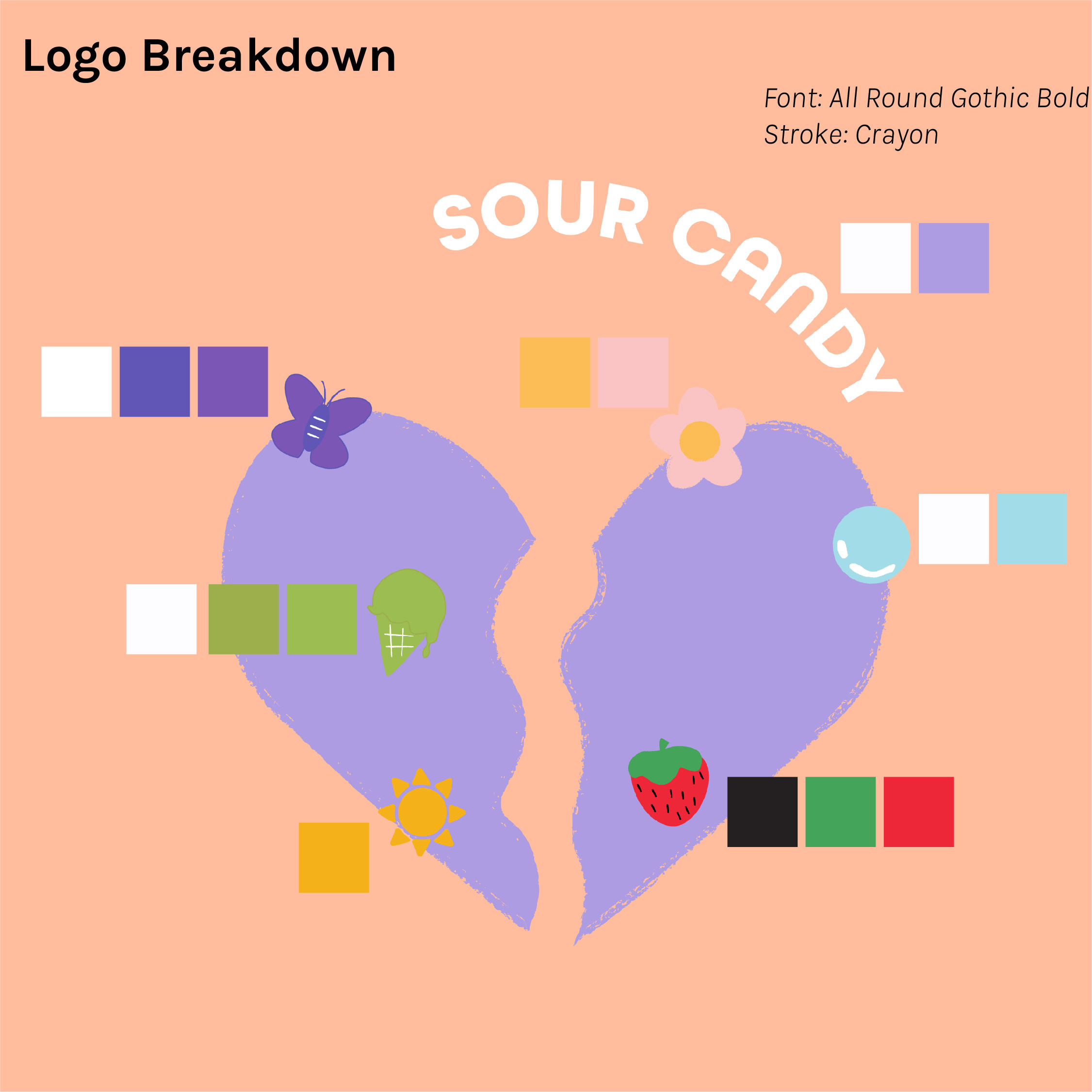 To create my artwork, I drew inspiration from one of the pictorials in Rodrigo's album and used Illustrator to sketch out her face. I wanted to include other elements from the album, such as the lilac color, a broken heart, and the name of the album. To stay true to the album's playful and nostalgic teenage energy, I opted for fonts with soft curves but hard edges. However, as I continued with my design, I decided to forego using Rodrigo's face altogether. Instead, I chose to focus on the broken heart and added stickers that decorated her face onto it. The final artwork captures the youthful and nostalgic tone of the album while also incorporating the broken heart, which is significant to the album's themes.