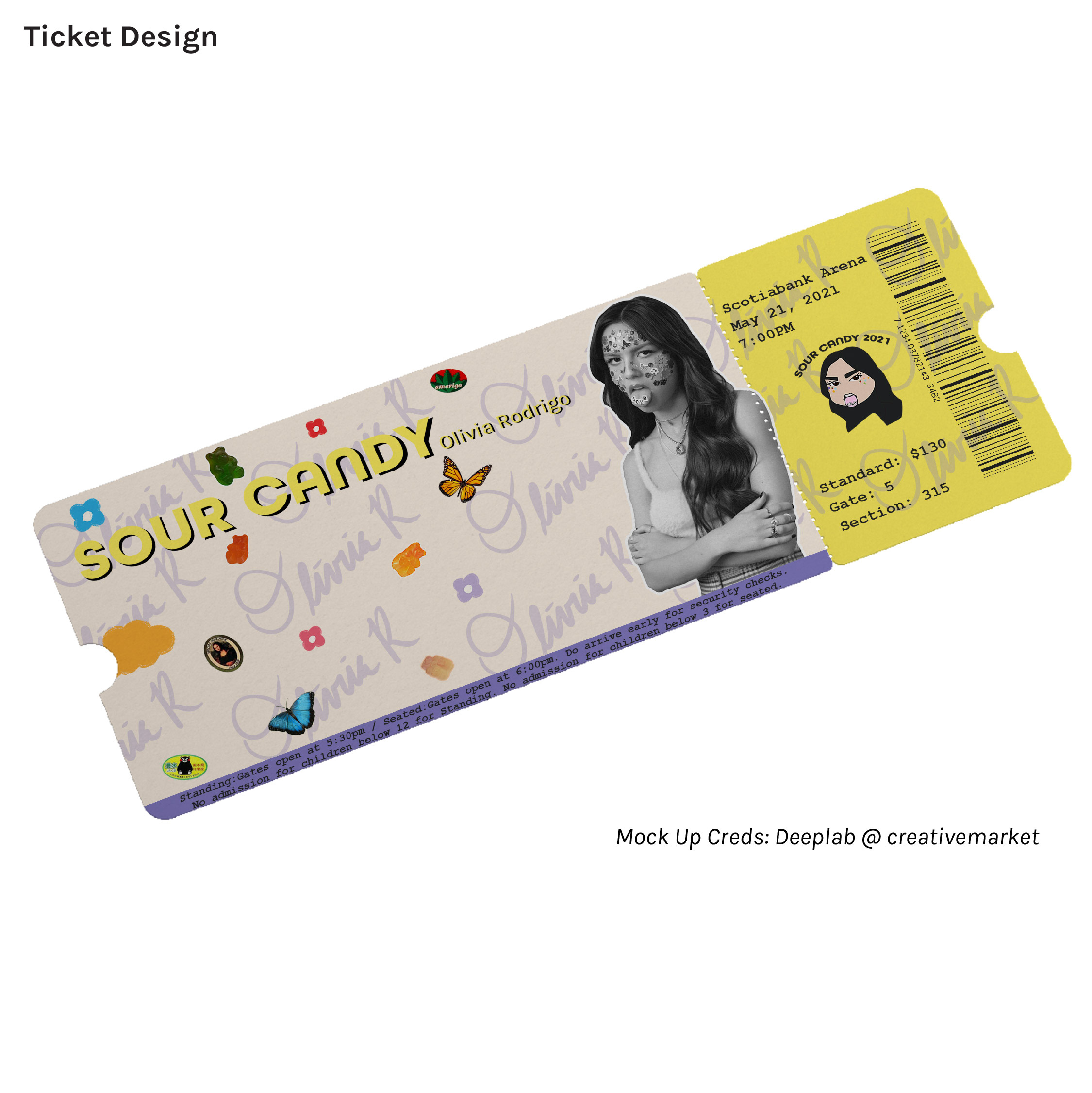 To bring my designs to life, I utilized mockups to create realistic representations of the concert tickets, billboard advertisement, and t-shirt. By using mockups, I was able to visualize how the designs would look in real-life situations, which helped me to make necessary adjustments and ensure that the final products would be visually appealing. For the concert tickets, I stayed true to my sticker design, which featured a heartbroken theme and bold typography, while also incorporating the necessary event details. The billboard advertisement was designed to look like a license plate, inspired by Olivia Rodrigo's hit song "Driver's License".